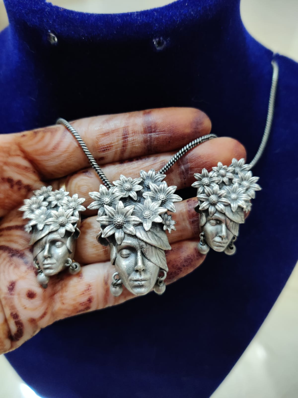 Brand inspired pendant set with matar mala